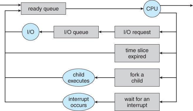 프로세스가 시스템에 들어가면, 준비 큐로 들어간다.