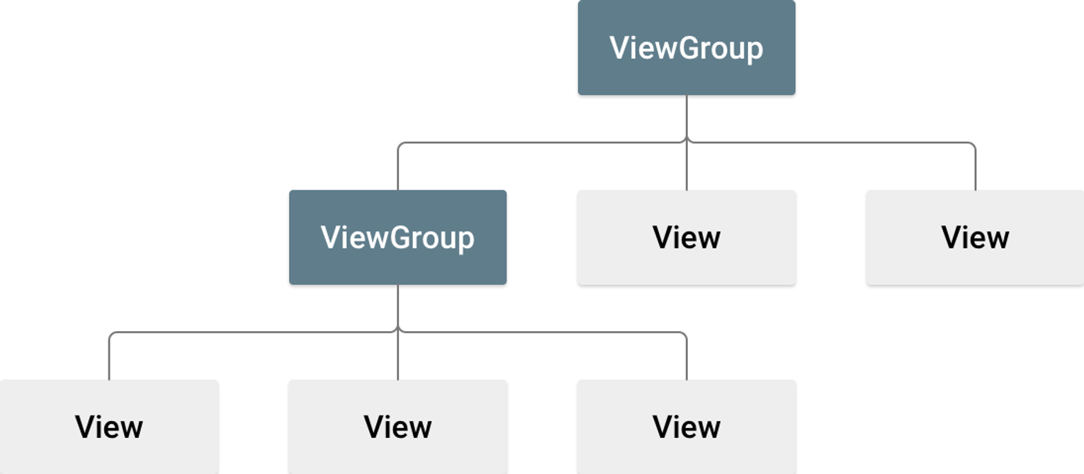 - 안드로이드의 화면은 ConstraintLayout같은 뷰 그룹이 다른 뷰나 뷰 그룹을 가지고 있는 형태로 만들어진다.